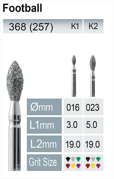 ראש יהלום בצורת כדורגל הוא צורה ייחודית של הראש והגריט המחוספס הופכים אותו לכלי מקצועי ורב שימושי בתחום רפואת השיניים והמעבדה.